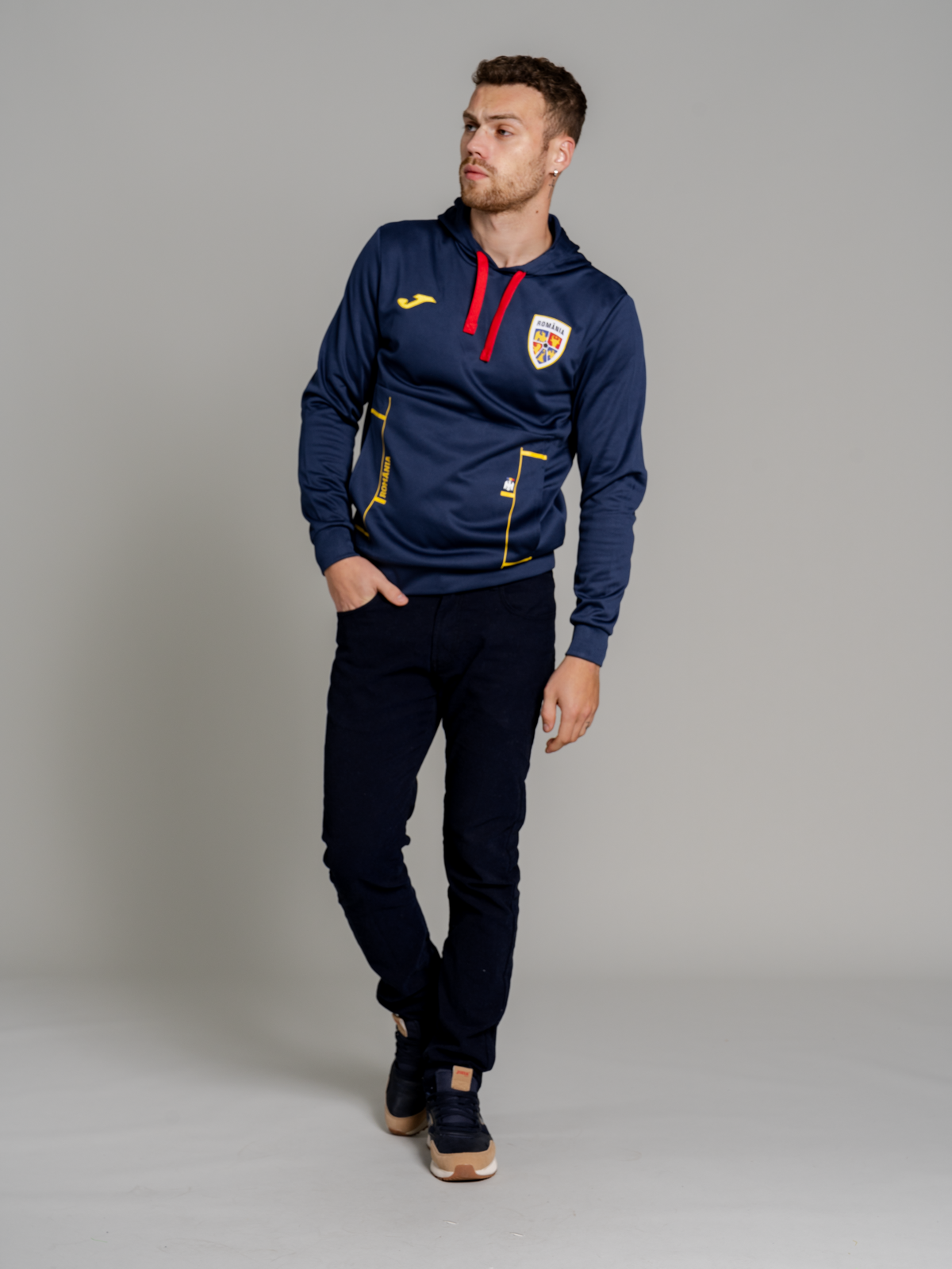 Fabricada con materiales de alta calidad, asegura confort, calidez y durabilidad, tanto para entrenamientos como para el uso diario. Con el escudo oficial de la selección y detalles icónicos que representan a Rumanía, esta prenda es imprescindible para los seguidores más fieles del equipo.